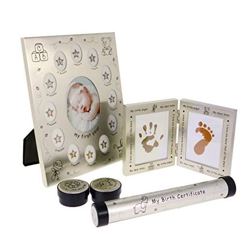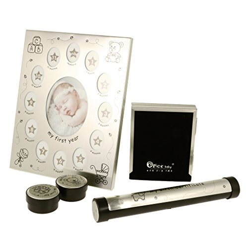 - リストには、赤ちゃんの最初の歯と髪のロック、出生証明書を保持するための特殊なシリンダー、手や足跡を表示するために二つ折りフレーム、および赤ちゃんの最初の年の写真を保持してより大きなフレームを保持するために2個の漫画のラウンドコンテナが付属しています。