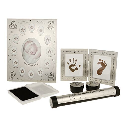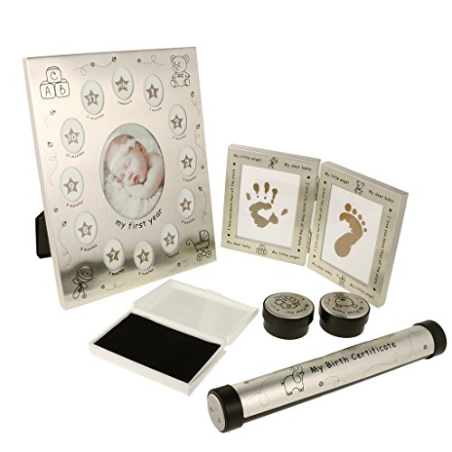 リストには、赤ちゃんの最初の歯と髪のロック、出生証明書を保持するための特殊なシリンダー、手や足跡を表示するために二つ折りフレーム、および赤ちゃんの最初の年の写真を保持してより大きなフレームを保持するために2個の漫画のラウンドコンテナが付属しています。