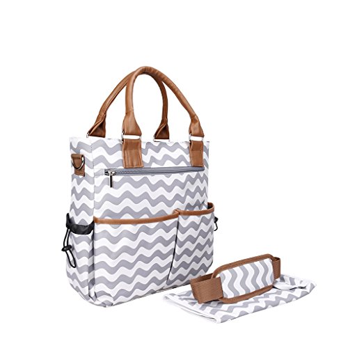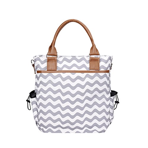 Lovoski オーガナイザー ストライプ柄 大容量 ベビーおむつ マザーズバッグ 取替えパッド付 実用的 全2色 - グレー
