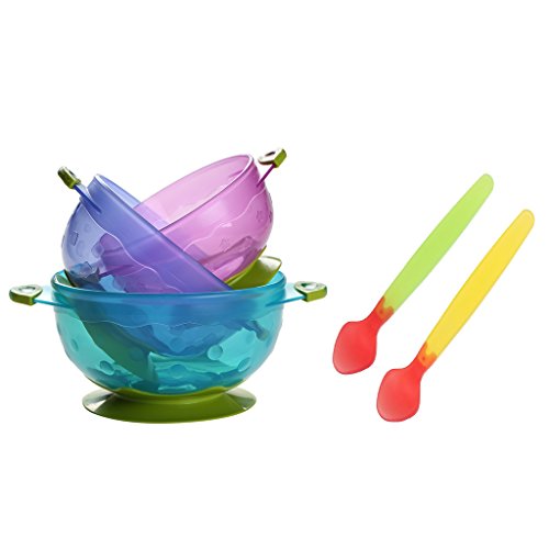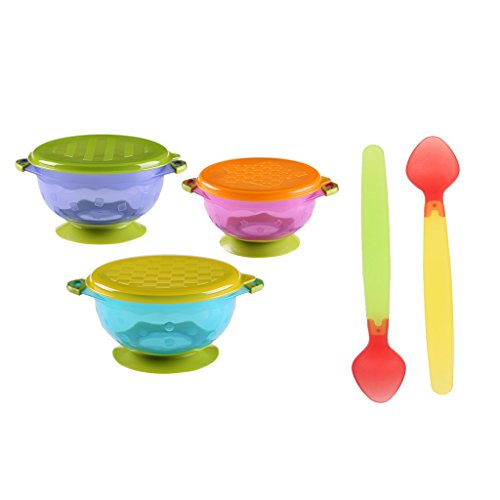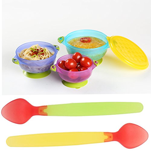 Lovoski 食品グレード 安全 赤ちゃん ベビー食器 食事 3個 給餌ボウル 吸盤ボウル 2個 温度感知スプーン 感温スプーン
