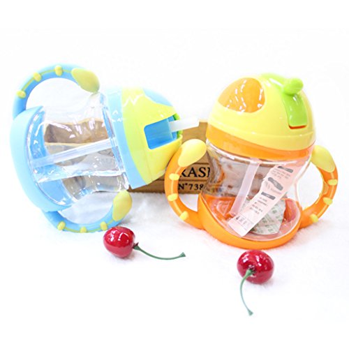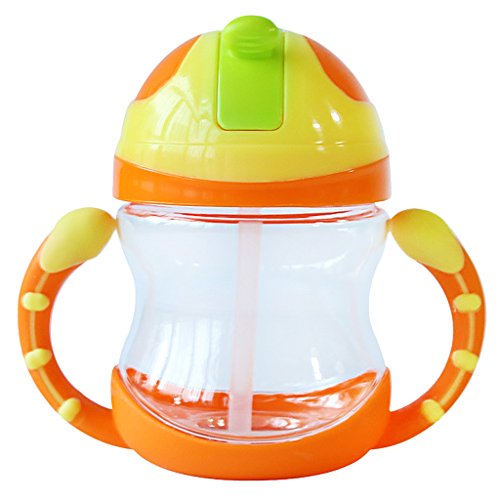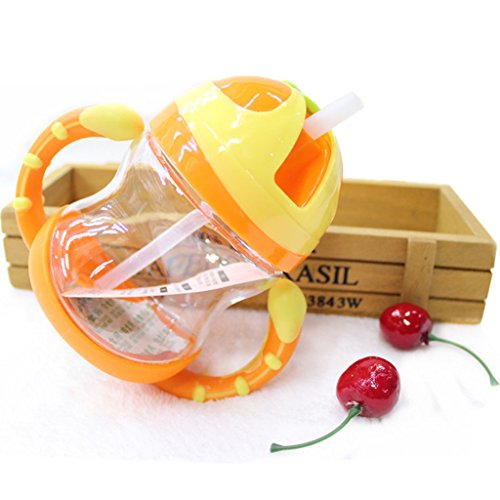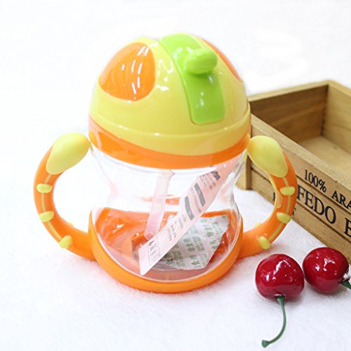 Lovoski ベビー ボトル ストローカップ 水ボトル ハンドル 両手マグ 6ヵ月以上 全4色 - オレンジ