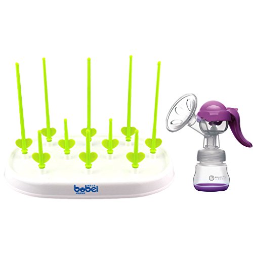 Lovoski 手動 マッサージ 搾乳器 さく乳器 乳ポンプ + ボトル おしゃぶり 乾燥ラック 乾燥棚 全2色選べる - 紫緑