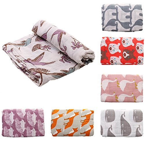 Lovoski 赤ちゃん モスリン コットン 二層 ブランケット 毛布 バスタオル おくるみ 可愛い 全7パタン - 鳥