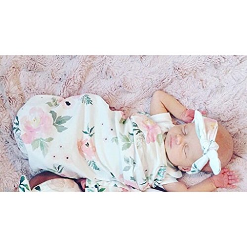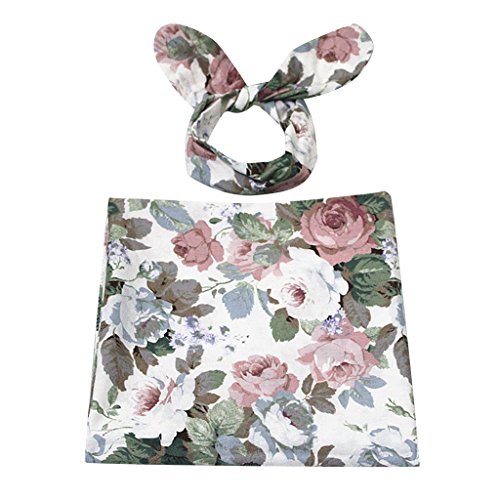 Lovoski 花柄 スワドル 幼児 ラップ ブランケット 寝袋 ヘッドバンド セット 写真撮影 全2様式 - #2