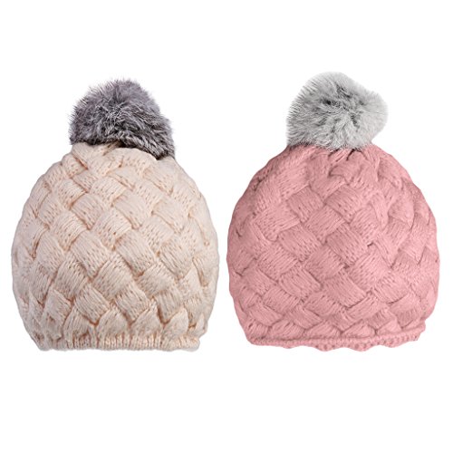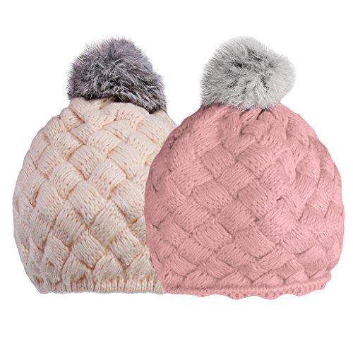 Lovoski 2個 お買い得 ベビー 赤ちゃん ビーニー キャップ 帽子 柔らかい ボンボン付