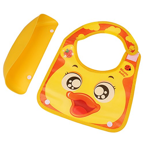 - 広いビブは、赤ちゃんの服をきれいに守ることができます。深いポケットは、食べ物を拾って流出します。