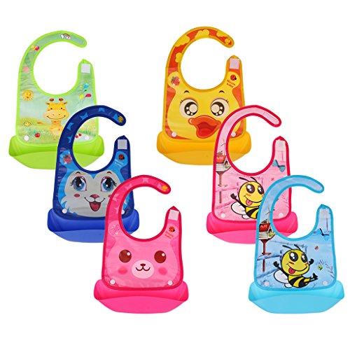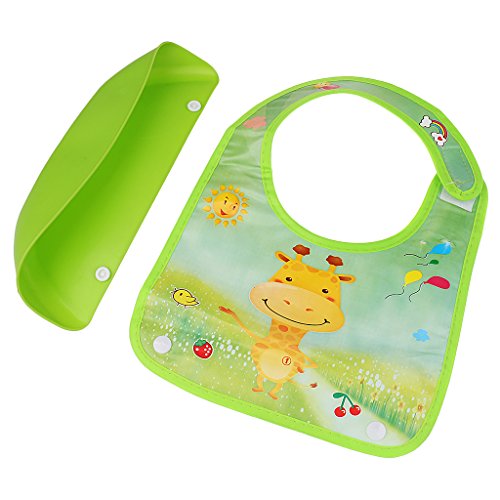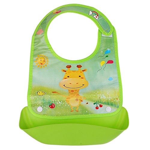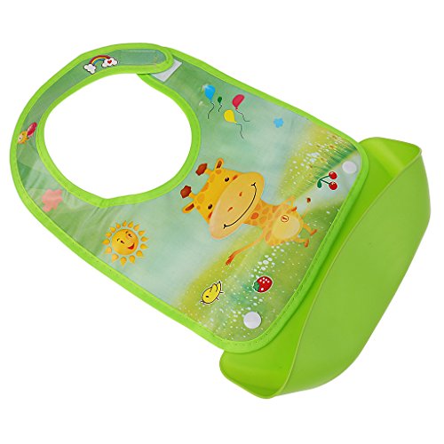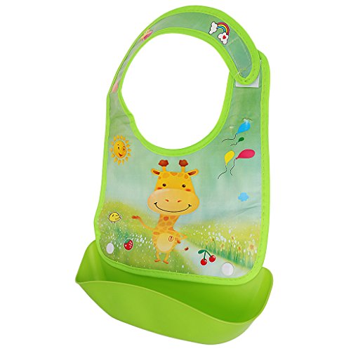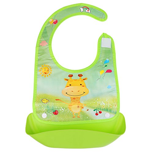 - 広いビブは、赤ちゃんの服をきれいに守ることができます。深いポケットは、食べ物を拾って流出します。