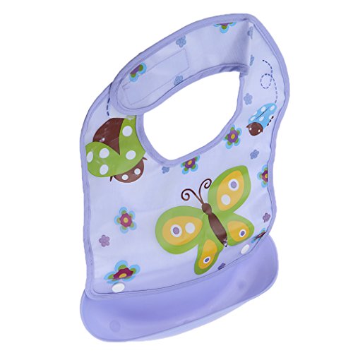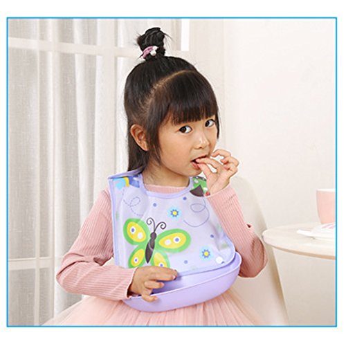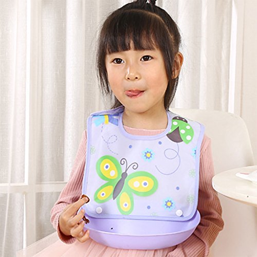 - 広いビブは、赤ちゃんの腸を守ることができます。深いポケットは、食べ物を拾って流出します。