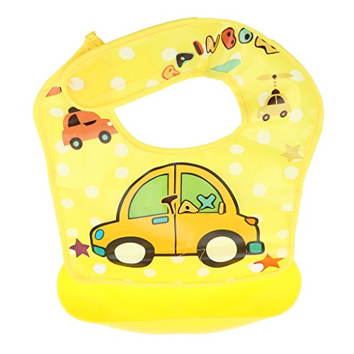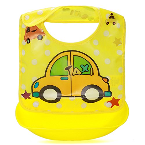 - 広いビブは、赤ちゃんの腸を守ることができます。深いポケットは、食べ物を拾って流出します。