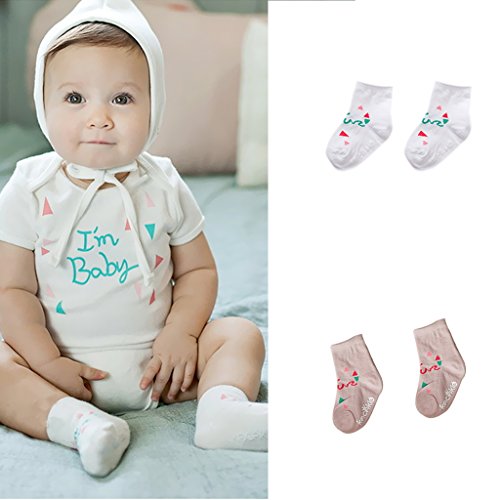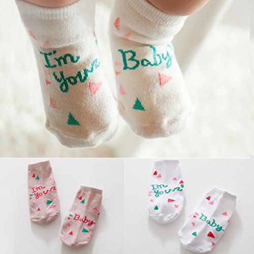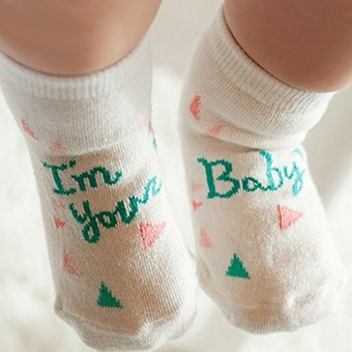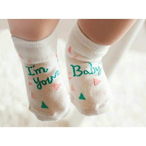 Lovoski 赤ちゃん 綿 アルファベット ソックス 靴下 滑り止め 吸汗 全2色2サイズ選べる - 緑, M