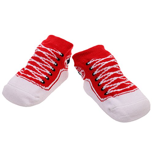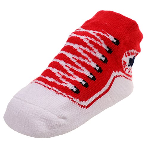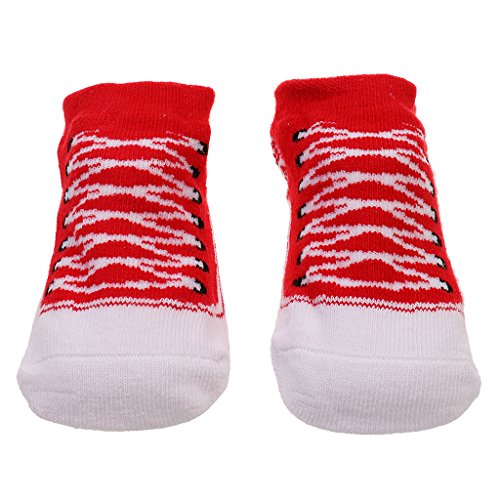 Lovoski 0-1歳 赤ちゃん コットン ソックス 靴下 滑り止め 通気性 防臭 靴紐のデザイン 全7色 - 赤