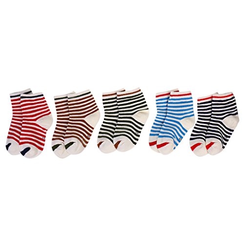 Lovoski 5ペア キッズ 子供 コットン ソックス 靴下 快適 全2色3サイズ - ストライプ, M