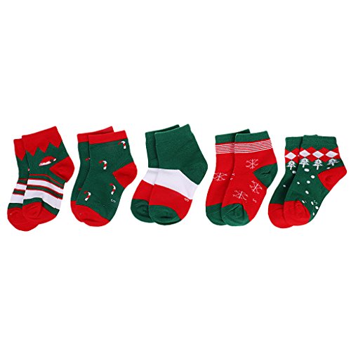 Lovoski 5ペア キッズ 子供 綿 ソックス 靴下 子供ソックス 抗菌防臭 赤 全3サイズ - L