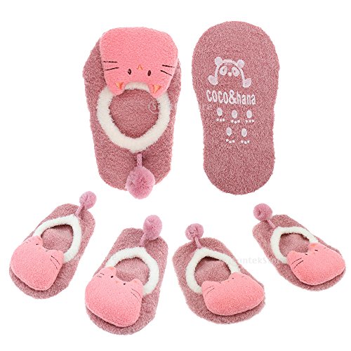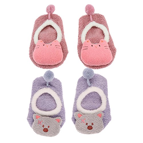 Lovoski ノンスリップ ベビーアンクルソックス 2-4歳の子供 ぬいぐるみとコットン 2ペア ピンクとパープル