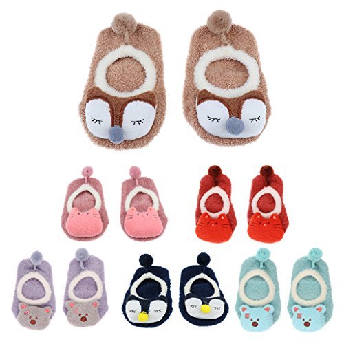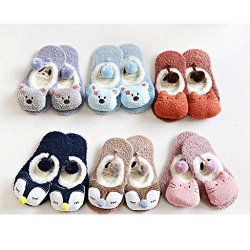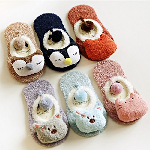 Lovoski アンチスリップ 6ペア 2~4歳のベビー 漫画 ぬいぐるみ ウォーム アンクルソックス 可愛い