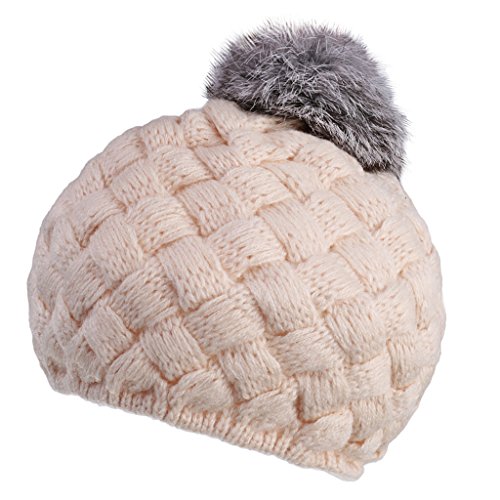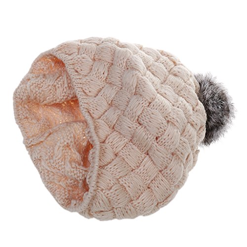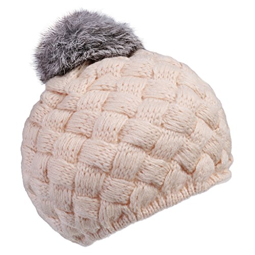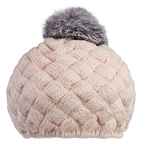Lovoski ベビー ビーニー 帽子 編み 赤ちゃん キャップ ハット ボンボン 4色選べる - ベージュ, ワンサイズ