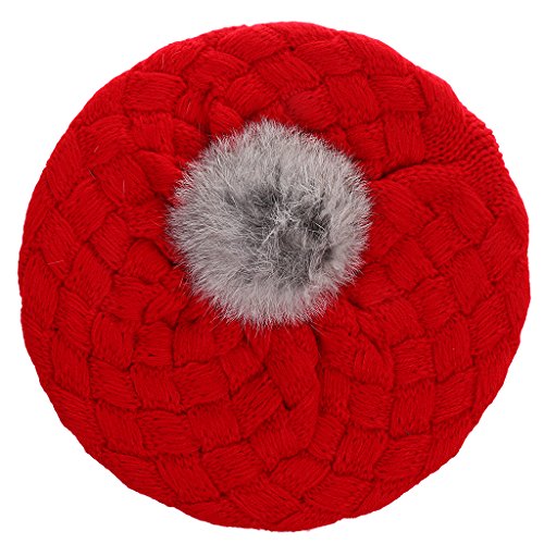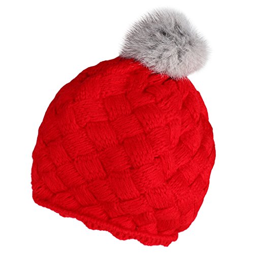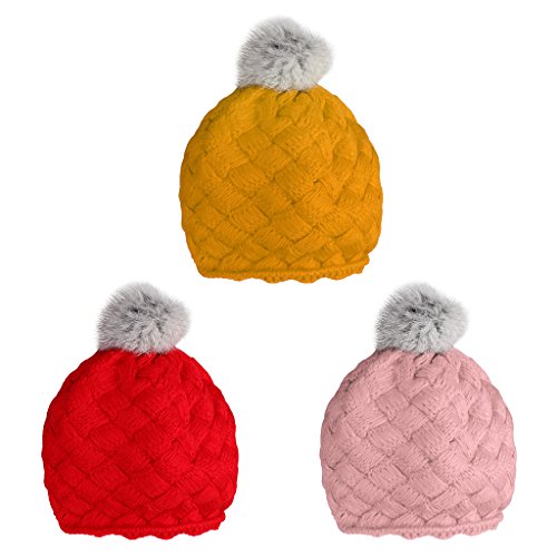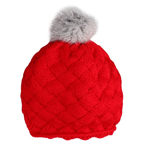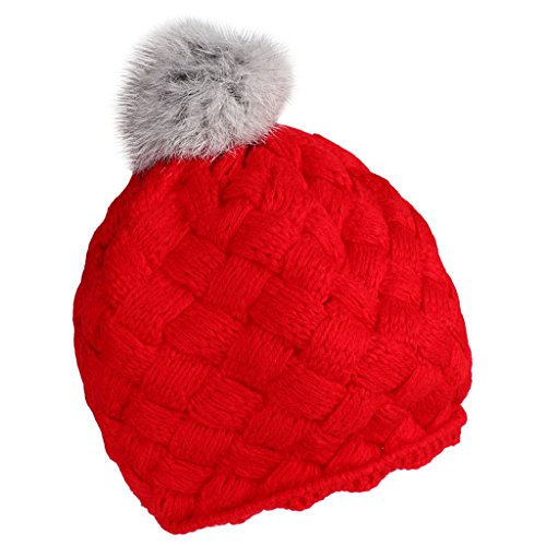 Lovoski ベビー ビーニー 帽子 編み 赤ちゃん キャップ ハット ボンボン 4色選べる - 赤, ワンサイズ