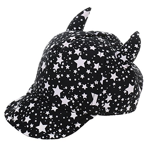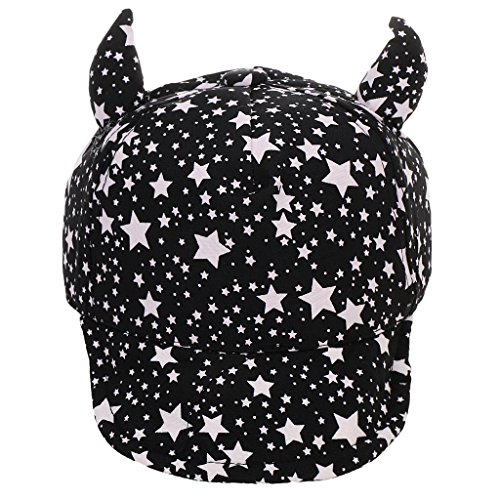 Lovoski 赤ちゃん 星柄 牛の角 デザイン キャップ 帽子 可愛い ギフト 全2色選べる - ブラック