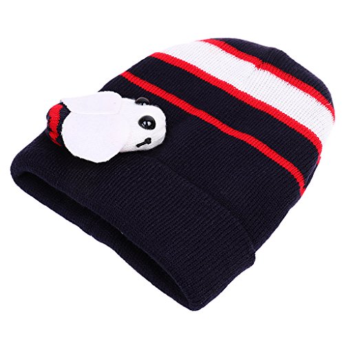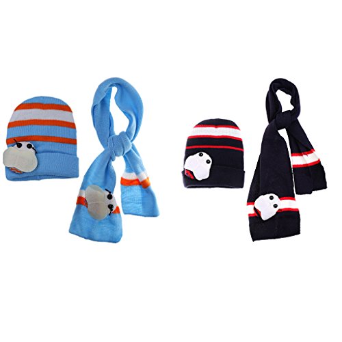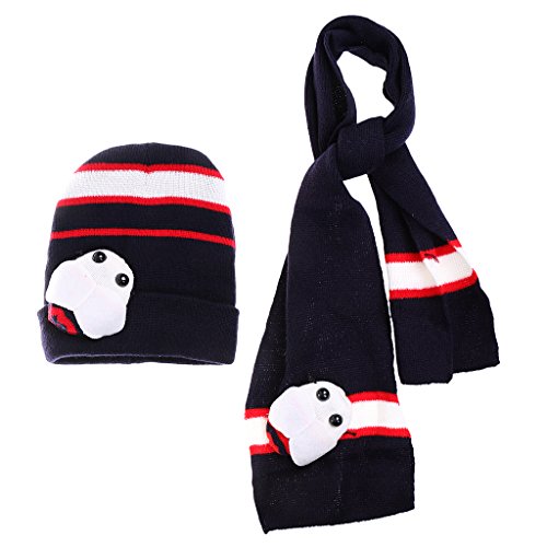 Lovoski 赤ちゃん 子供 2個セット カブトムシ柄 編み ビーニー 帽子 スカーフ 3色選べる - 濃紺