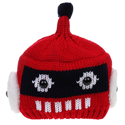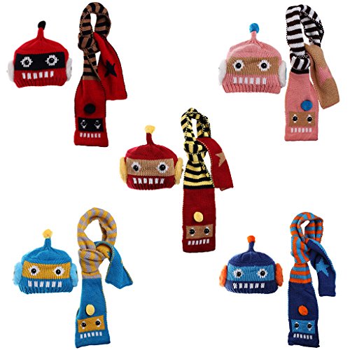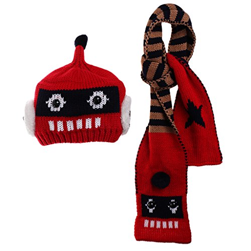 Lovoski 可愛い 赤ちゃん 2本セット ロボット ビーニー 帽子 スカーフ 防寒 5色選べる - 赤