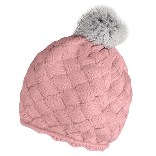 Lovoski ベビー ビーニー 帽子 編み 赤ちゃん キャップ ハット ボンボン 4色選べる - ピンク, ワンサイズ