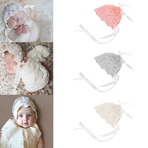Lovoski 0-3ヶ月 赤ちゃん 幼児 レース 綿 ビーニー 帽子 キャップ ハット 写真撮影 快適 全3色 - ホワイト