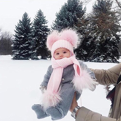 - 赤ちゃん冬暖かいニット帽幼児キッドかぎ針編みビーニーキャップスカーフセット。