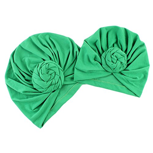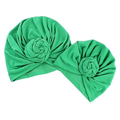 Lovoski 母と赤ちゃんのトップ帽子 母 赤ちゃん 花 ターバン 帽子 幼児 暖かい 全6色 - 緑