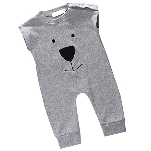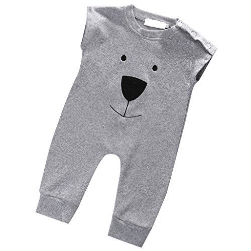 Lovoski かわいい ベビー 赤ちゃん コットン 袖なし クマ柄 ロンパース カバーオール グレー 全4サイズ - 80センチ