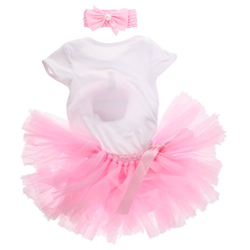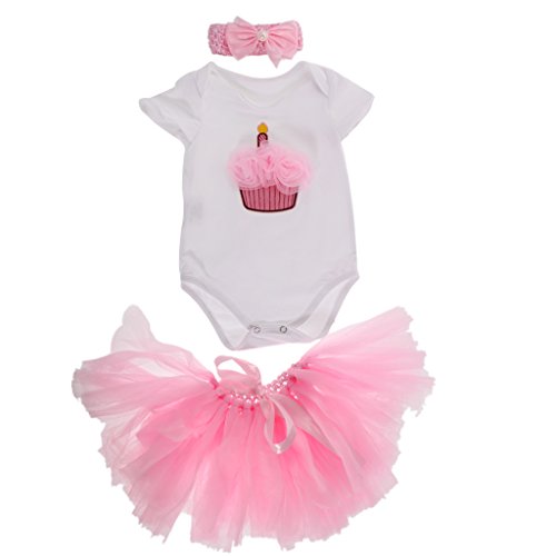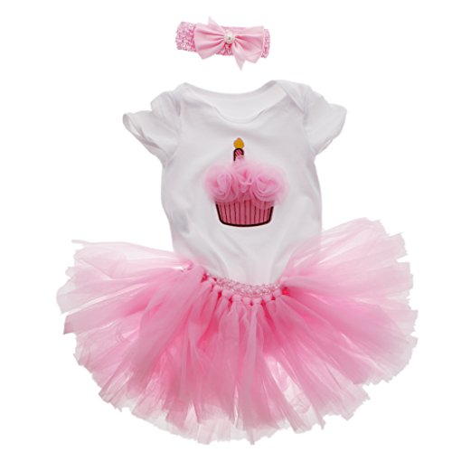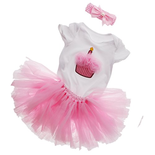 - ちょう結びの装飾、ケーキの装飾とチュールスカートがセットされたロンパースとガールズ王女のヘッドバンド。