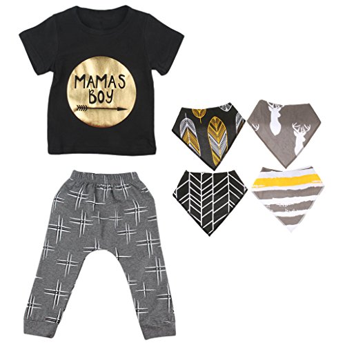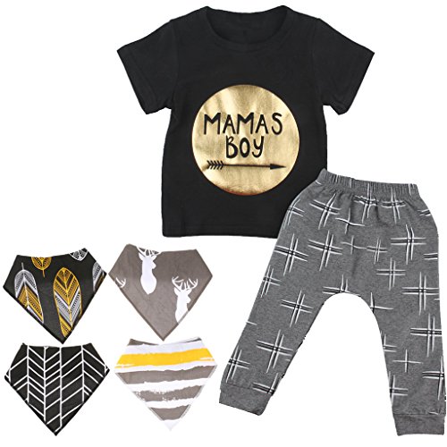 - 4枚のベビーよだれビブ 及びTシャツ とパンツの上下セットを含みます