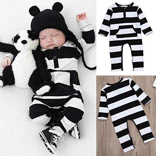 Lovoski キッズ 赤ちゃん ロンパース ジャンプスーツ 綿 長袖 通気性 ストライプ柄 可愛い 快適 全4サイズ - 80