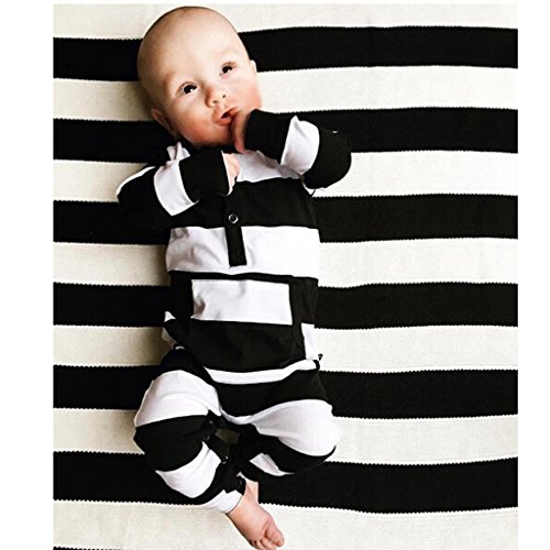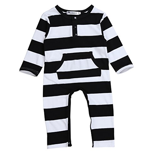 Lovoski キッズ 赤ちゃん ロンパース ジャンプスーツ 綿 長袖 通気性 ストライプ柄 可愛い 快適 全4サイズ - 90