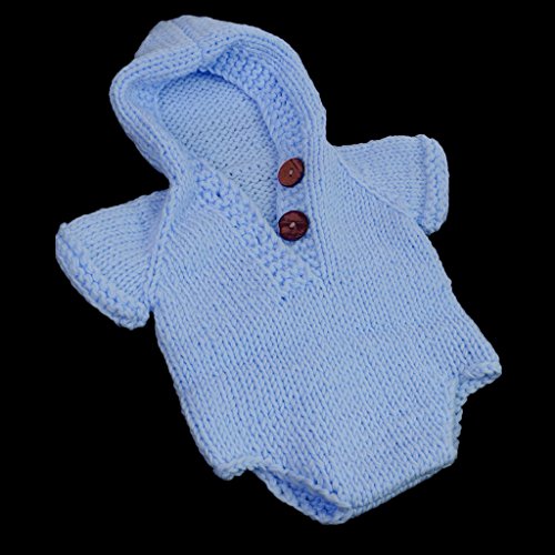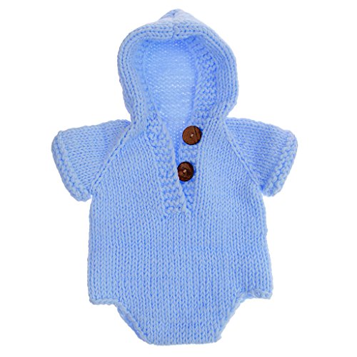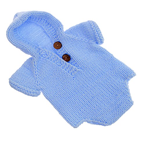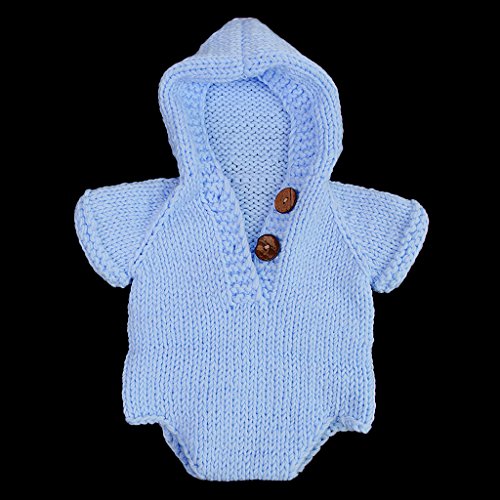 Lovoski 新生児 出産祝い ベビーシャワー 洗礼 写真撮影 ニット ロンパース カバーオール フード付 全11色 - ライトブルー