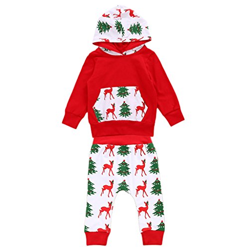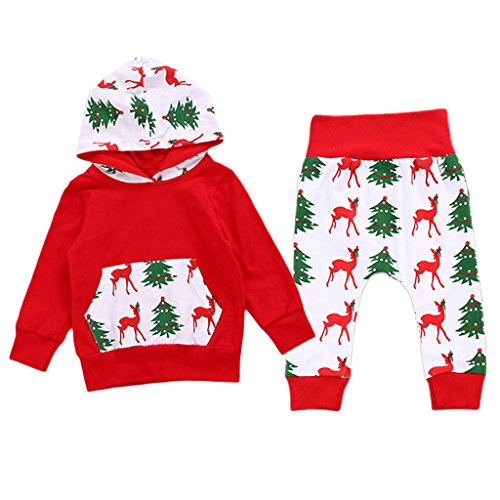 Lovoski ベビー 子供服 綿 長袖 クリスマスのパタン パーカー ズボン ロングパンツ 上下セット 柔らかい 全4サイズ - 80
