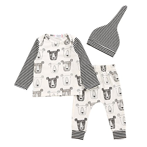 - 3本セット/新生児幼児女の子ボーイズロングスリーブアニメーションヘッド写真トップスパンツ服。