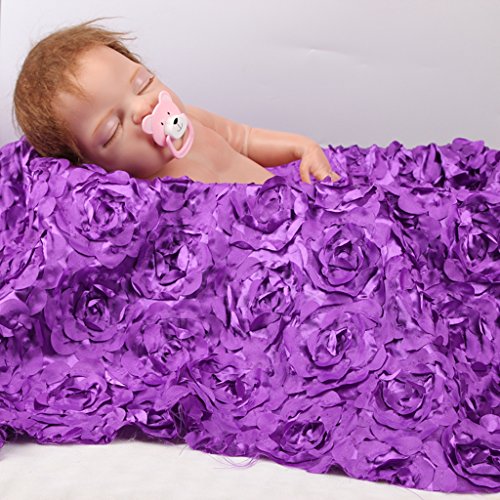 Lovoski 新生児 バラ ブランケット マット ラップ 毛布 ローズパタン 写真撮影 背景 道具 柔らかい 全10色 - ディープパープル