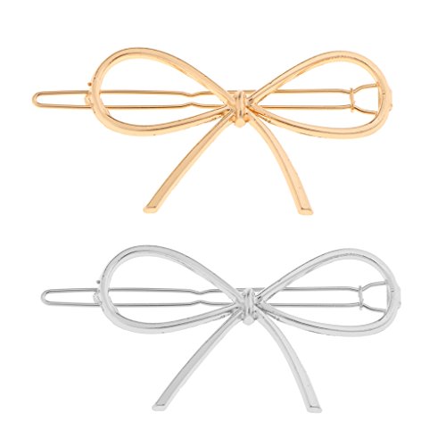 Lovoski シンプル ちょう結び 蝶 メタル ヘアピン ヘアクリップ 髪飾り 髪留め ヘアアクセサリー ユニーク ギフト 全2色選べる - シルバー