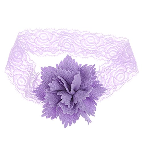 Lovoski 赤ちゃん ベビー ヘッドバンド ヘアバンド ターバン 花 レース 弾性 柔らかい 全6色 - ライトパープル