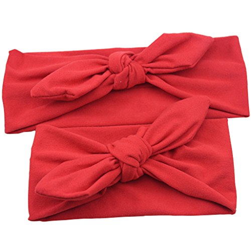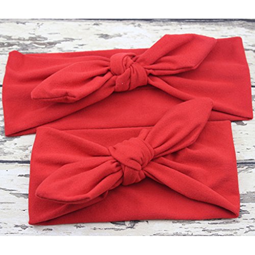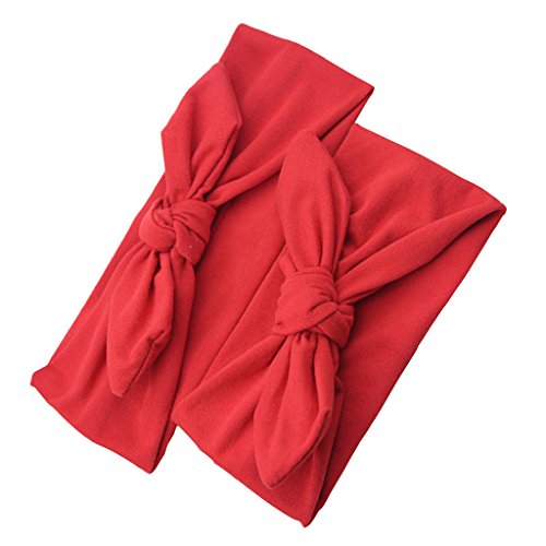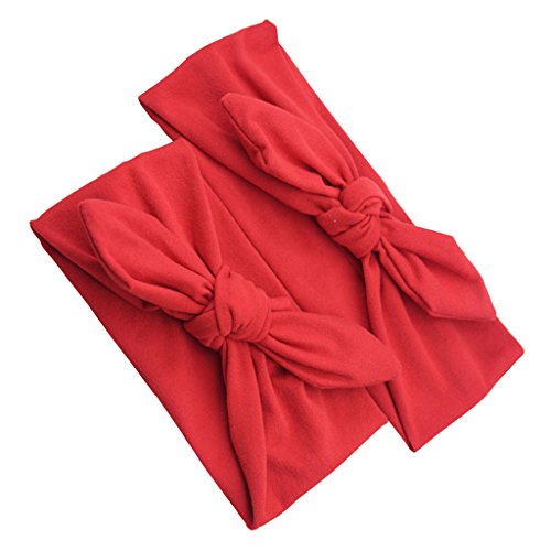 Lovoski 2点セット ママ ベビー 親子 蝶結び ウサギの耳 ヘアバンド ラップ ヘッドバンド 髪留め 全8色 - レッド
