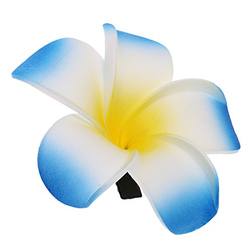 このかわいい小さな島スタイルのヘアクリップは、熱帯のプルメリアの花で飾られている。