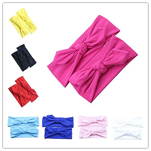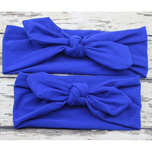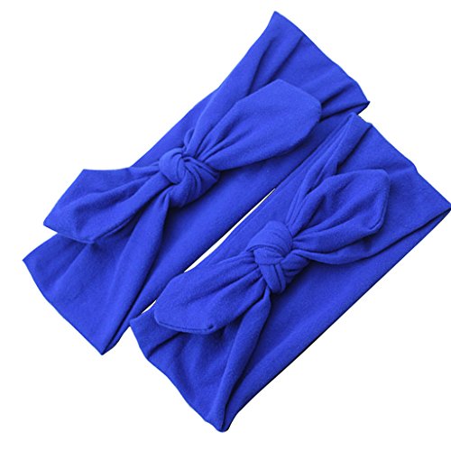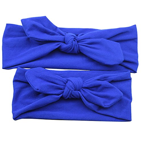 Lovoski 2点セット ママ ベビー 親子 蝶結び ウサギの耳 ヘアバンド ラップ ヘッドバンド 髪留め 全8色 - クブルー
