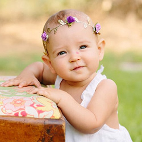 Lovoski 幼児 ガールズ ローズ フラワー 花輪 ヘアバンド 髪飾り ヘッドドレス ヘアアクセサリー 全7色 - 紫