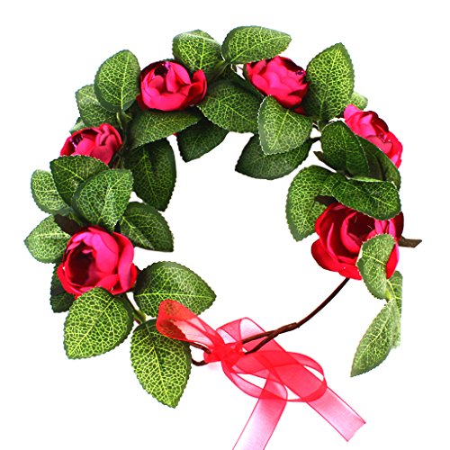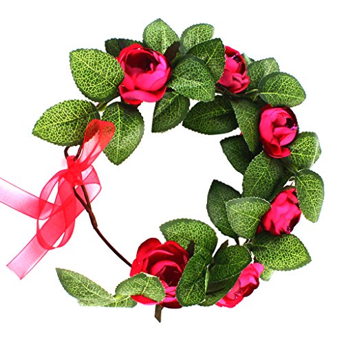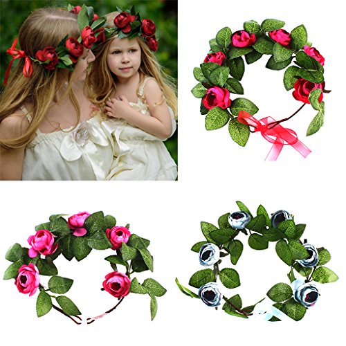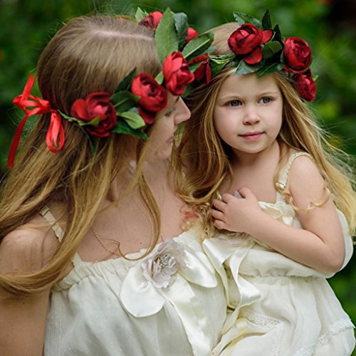 Lovoski キッズ ガール 花嫁介添人 花輪 ヘッドバンド 花飾り コサージュ ヘアアクセサリー 髪飾り 全3色 - レッド