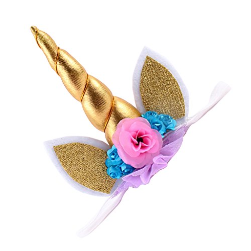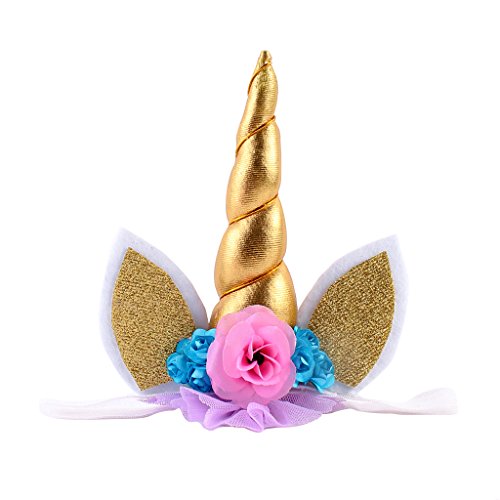 - 素敵なユニコーンホーンとキラキラの耳に花の装飾が付いています。
