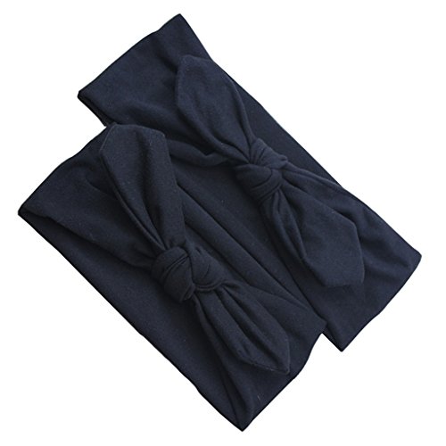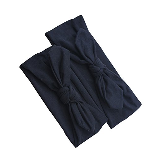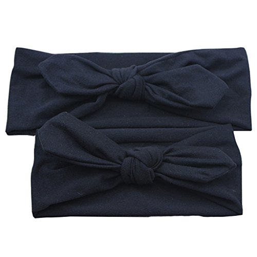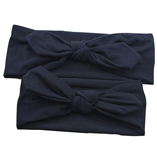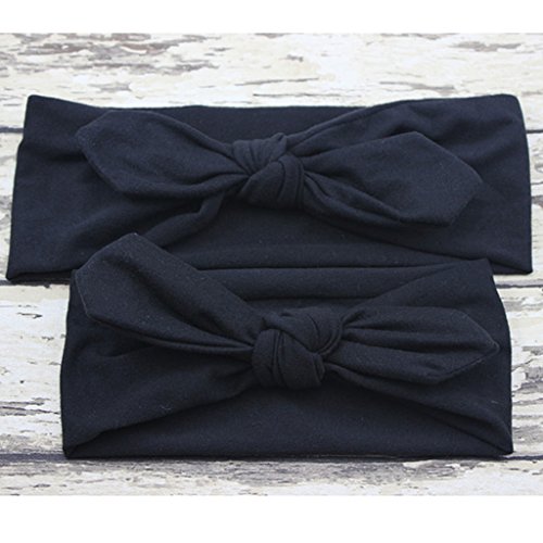 Lovoski 2点セット ママ ベビー 親子 蝶結び ウサギの耳 ヘアバンド ラップ ヘッドバンド 髪留め 全8色 - ブラック