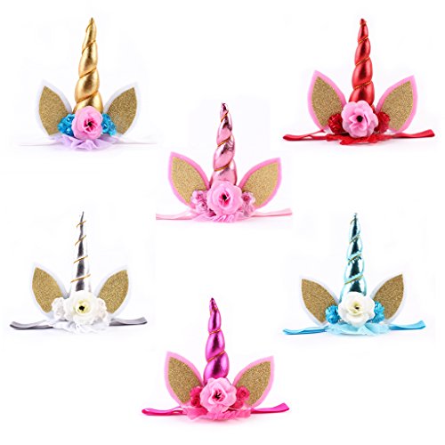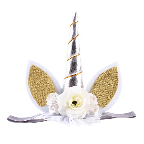 - 素敵なユニコーンホーンとキラキラの耳に花の装飾が付いています。