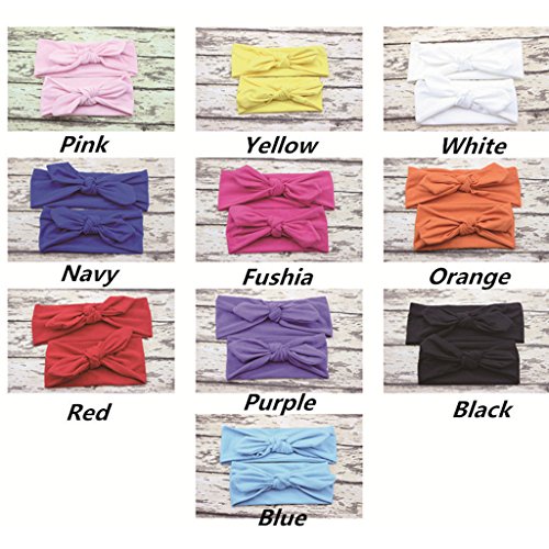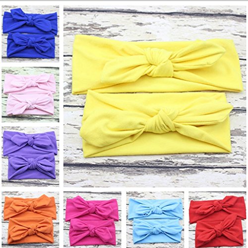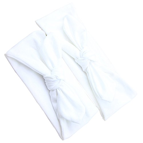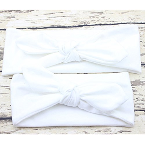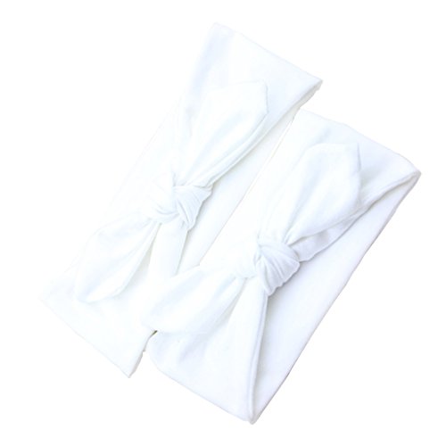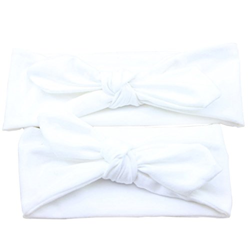 Lovoski 2点セット ママ ベビー 親子 蝶結び ウサギの耳 ヘアバンド ラップ ヘッドバンド 髪留め 全8色 - ホワイト