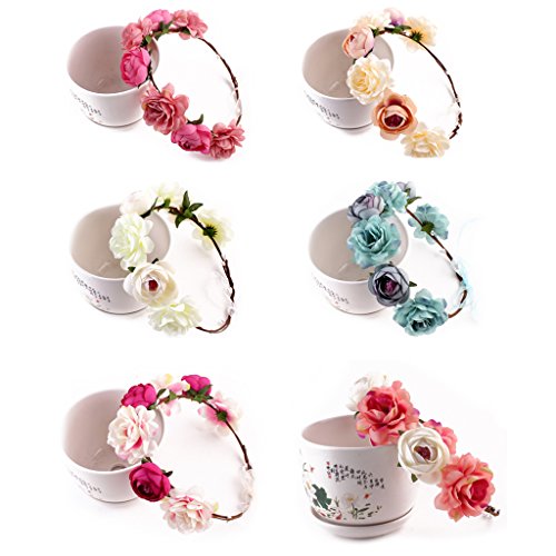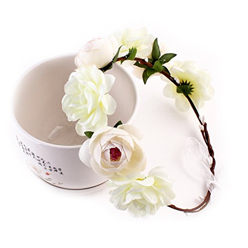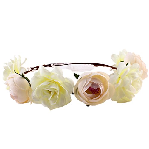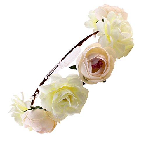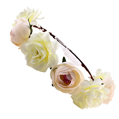 Lovoski 女性 花嫁 ボヘミア ビーチ 花輪 フラワー ヘアバンド ヘッドバンド 髪飾り 全6色 - カーキ