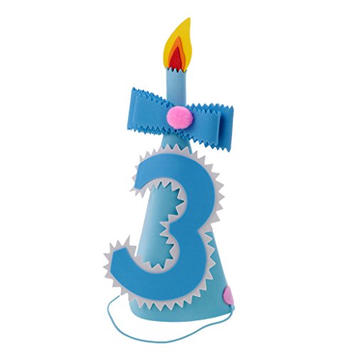 Lovoski 帽子 誕生日 パーティーコーンハット 全2色3種類 - 数字3, ブルー